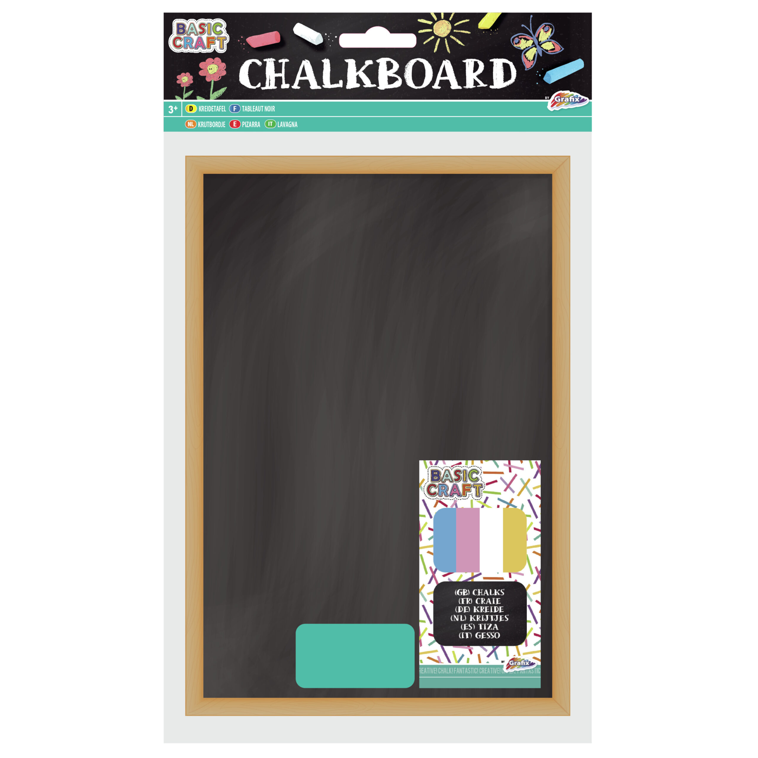 Houten krijtbord/schoolbord 20 x 16 cm met krijt en bordenwisser. Dit krijtbord met houten frame wordt geleverd met 4 gekleurde schoolbordkrijtjes en 1 bordenwisser. Afmeting: ca. 20 cm hoog en 16 cm breed.