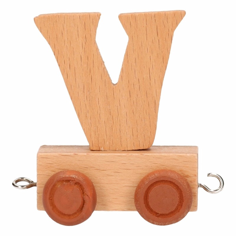 Houten lettertrein letter V. De letter is inclusief wagon circa 5 cm lang en 6 cm hoog. Exclusief wagon circa 4 cm lang en 4 cm hoog. Met deze houten letter trein kunt u iedere naam vormen. Een origineel kado voor bijvoorbeeld een verjaardag. U kunt in deze webshop terecht voor alle letters uit het alfabet.