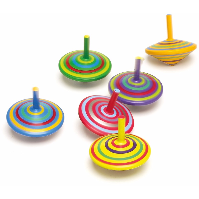 Houten speelgoed tollen – gekleurd mix – 6x stuks – dia 6 cm