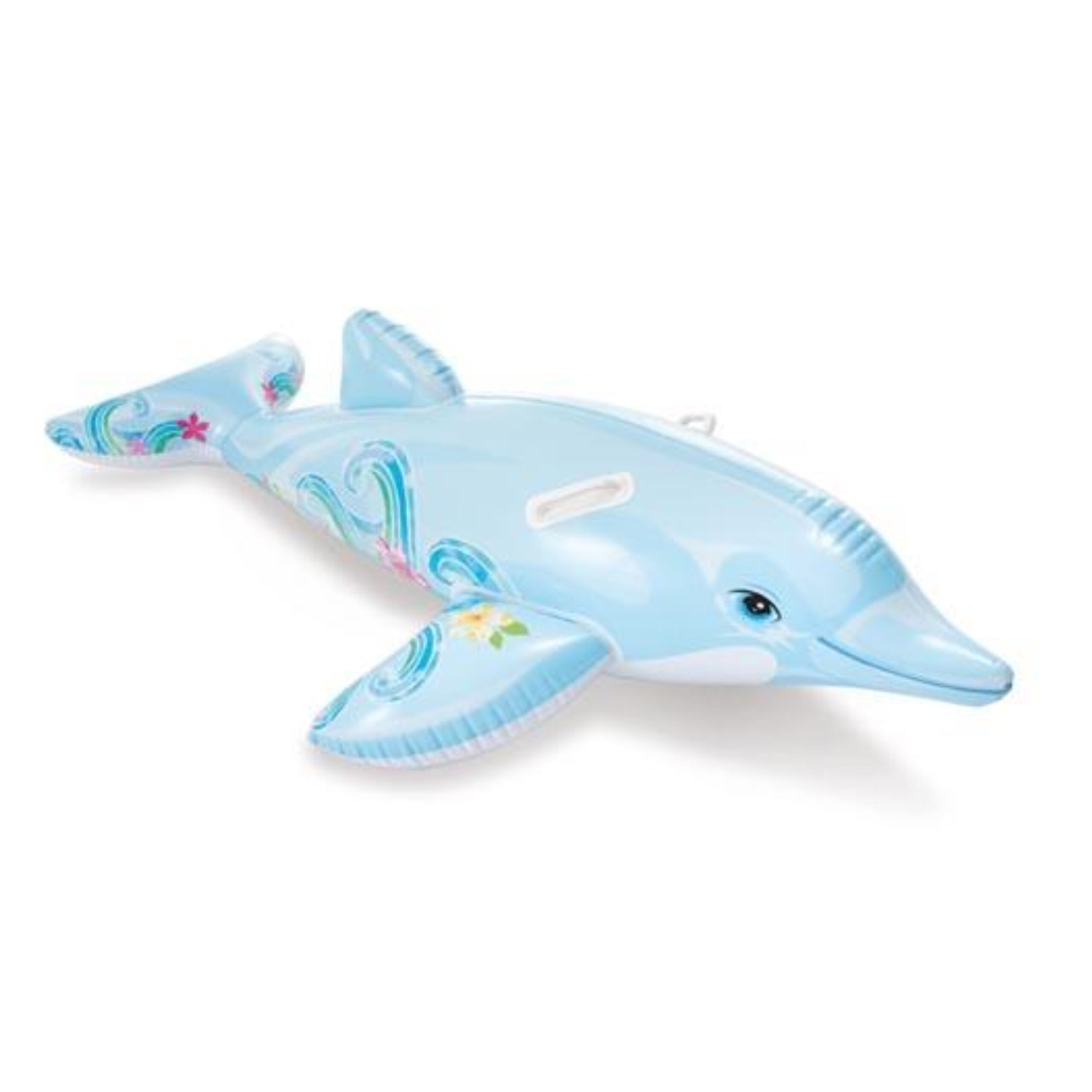 Grijze/zilveren dolfijn ride-on opblaasdier met twee handvaten aan de bovenzijde. Het opblaas dolfijntje is geschikt om te gebruiken als speelgoed en is geen zwemhulp. Materiaal: vinyl. Formaat lengte: 175 cm, breedte: 66 cm. Merk: Intex. Inclusief reparatiesetje. Opblaasbaar speelgoed voor kinderen vanaf 3 jaar en volwassenen. Opblaas dolfijnen.