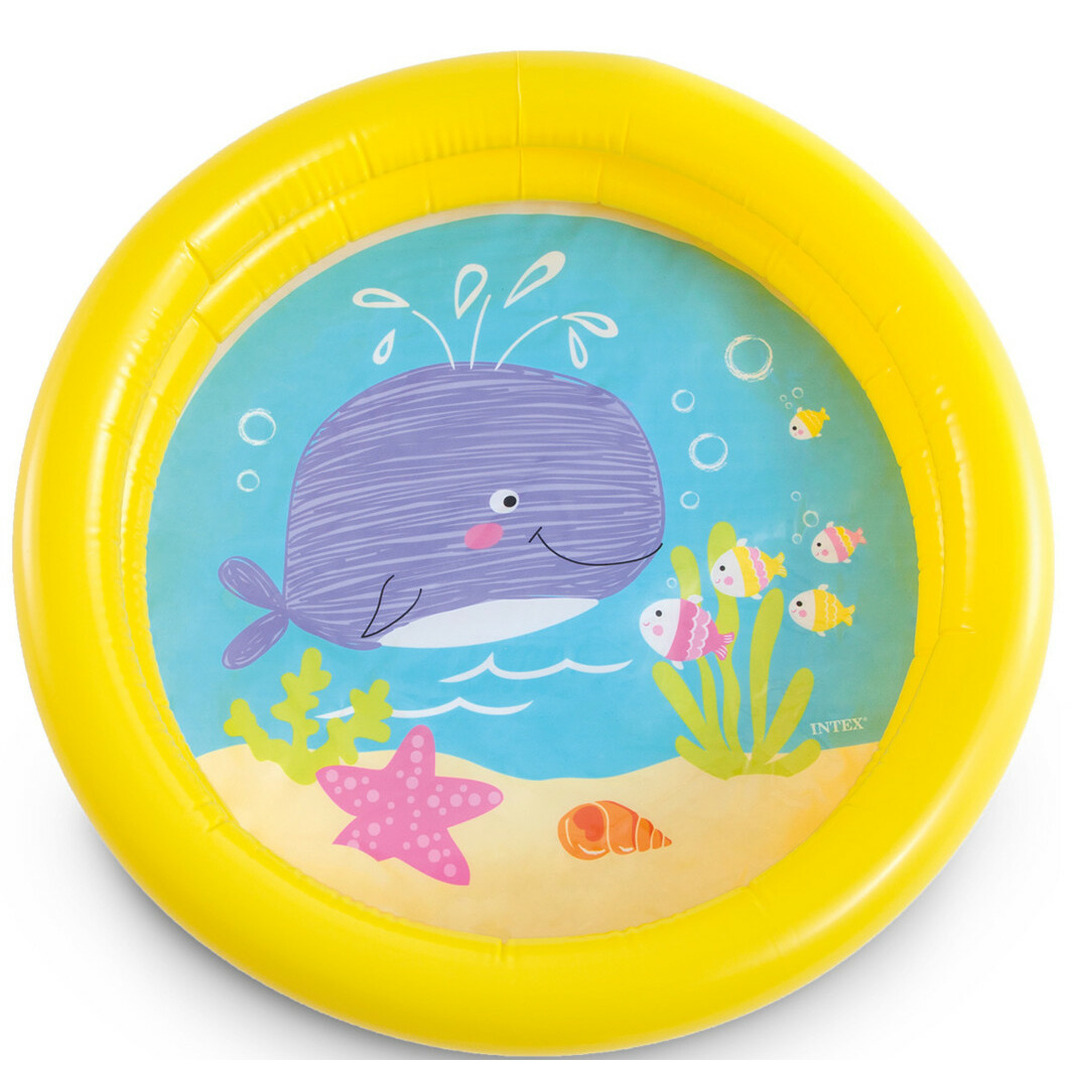 Rond geel opblaas zwembad van het merk Intex. Dit zwembad met 2 banden heeft op de bodem een vrolijke dieren opdruk. Dit product is ideaal voor de allerkleinsten in de zomer! Het formaat van dit product is circa 61 x 15 cm. Geschikt voor kinderen van 1 t/m 3 jaar.