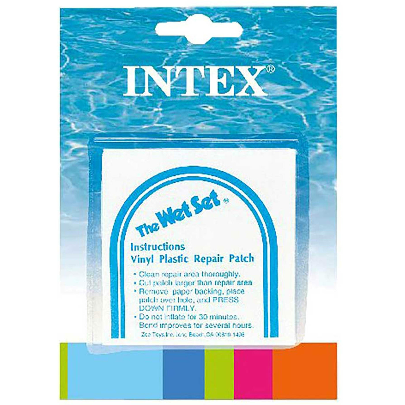 Intex reparatie pleisters 6 stuks. Blisterkaart met 6 reparatie velletjes om een lek in een opblaasartikel te kunnen plakken. De pleisters zijn zelfklevend en de grootte is ongeveer 7 x 7 cm.