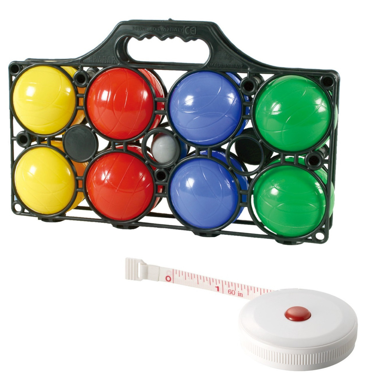 Deze jeu de boules set bevat 8 kunststof ballen en een markeringsballetje + een compact meetlint van 1,5 meter. De ballen hebben 4 verschillende kleuren. Met het compacte meetlint kan je nauwkeurig meten wie er gewonnen heeft.