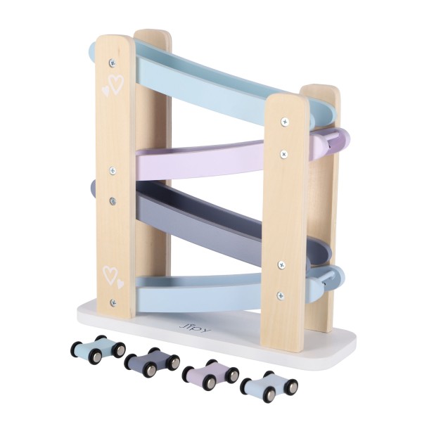 Met deze mooie Jipy Autobaan Hout Uni is het racen geblazen! De autobaan bestaat uit 4 houten baanstukken die zigzaggend naar beneden gaan. Laat de auto’s van bovenaf beginnen en kijk hoe snel ze beneden komen. Zo beleeft je kindje gegarandeerd…