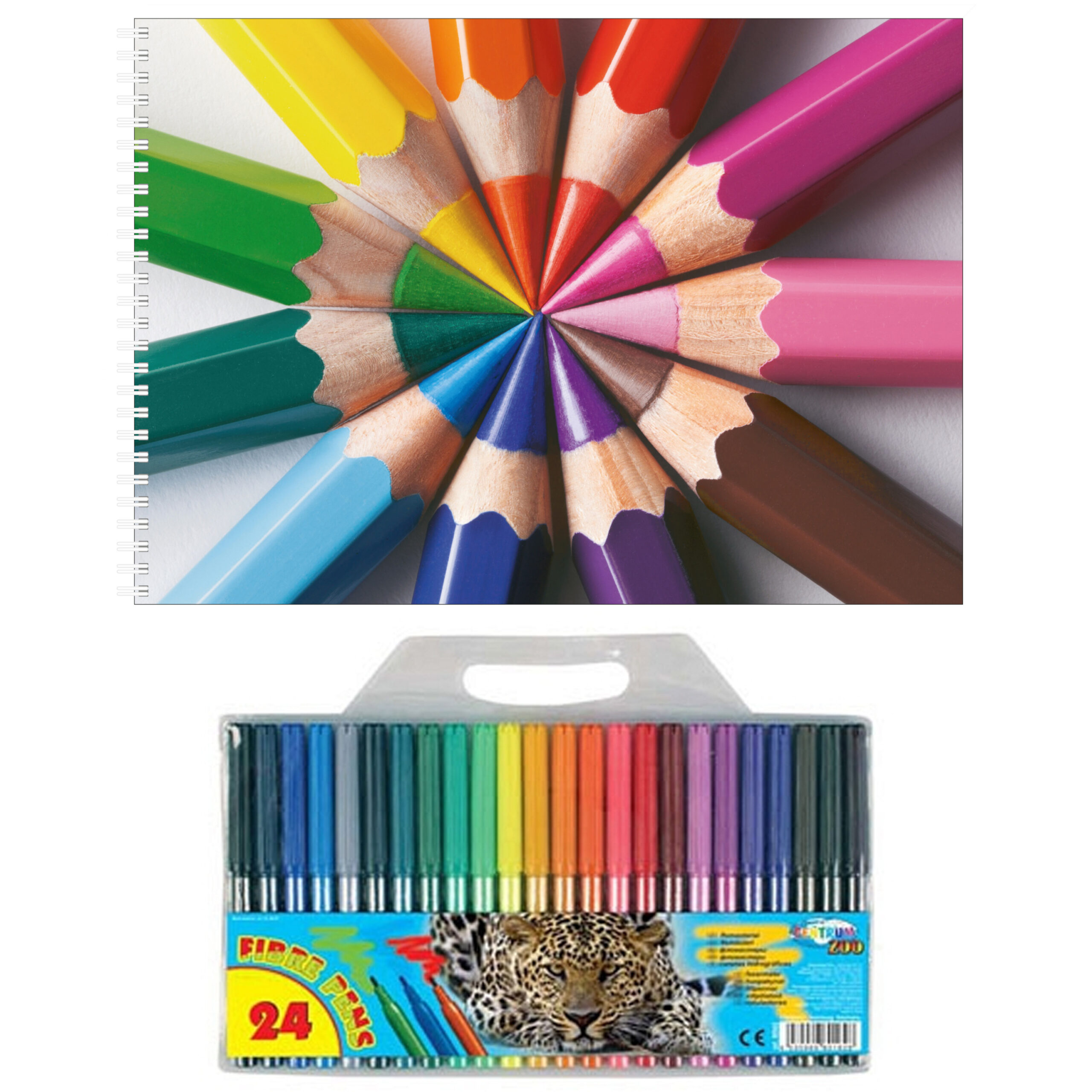 Mooie A4 formaat schetsboeken met stevig/ plastic voorblad met een mooie potloden bedrukking. Een schetsblok bevat 50 vellen wit van 80 grams papier. Schets/tekenboeken voor volwassenen of kinderen houdt al uw tekeningen/ schetsen bij elkaar door een witte ringband. Cadeauset. , Dit artikel bestaat uit:, 1x Viltstiften set – 24-delig – gekleurd – plastic hoes – stiften – tekenstiften, 2x A4 Kleurpotloden schetsboek/ tekenboek/ kleurboek/ schetsblok wit papier