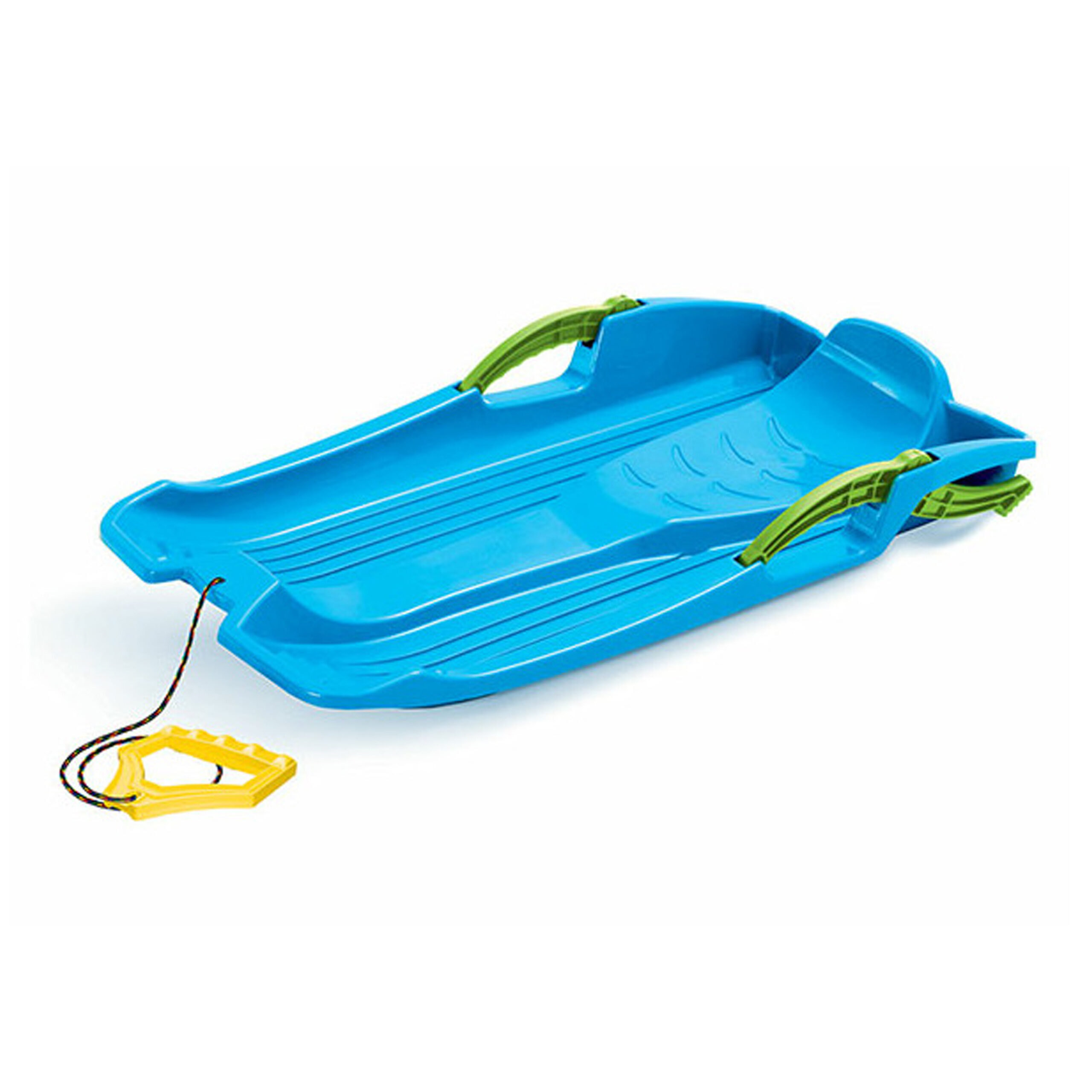 Kinder slee model Hornet. Een klassieke slee, draagbaar en gemakkelijk bestuurbaar. Afmetingen: 80 x 40 cm. In blauwe kleurstelling, voorzien van rem en trekkoord.