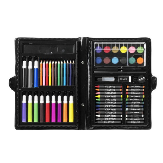Kleurkoffer/tekenkoffer 68-delig. Deze uitgebreide kleurkoffer bevat vetkrijt, viltstiften, potloden, puntenslijper, gum, lijn, liniaal en waterverf met kwast. Daarnaast is de koffer eenvoudig overal mee naartoe te nemen. Deze kleurset bevat maar liefst 68 onderdelen. Formaat koffer: 32 x 21 x 3 cm. Geschikt voor kinderen vanaf 3 jaar. Tekendoos/kleurkoffer voor kinderen.