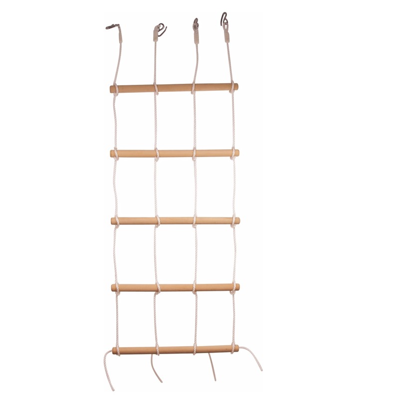 Klimladder voor kinderen. Deze klimladder van touw is het perfecte buitenspeelgoed voor avontuurlijke kinderen. Gemaakt om te gebruiken aan een klimwand, boomhut, schommelset of speeltoestel, biedt deze klimladder een leuke en uitdagende manier om actief te spelen. Dankzij het ontwerp en de veilige constructie kunnen kinderen hun motoriek en spierkracht op een speelse manier ontwikkelen. Ideaal voor in de tuin of op de speelplaats!