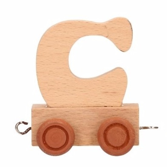 Houten letter trein C. De letter is inclusief wagon circa 5 cm lang en 6 cm hoog. Exclusief wagon circa 4 cm lang en 4 cm hoog. Met deze leuke houten letter trein C maakt u de namen van bijvoorbeeld uw partner, uw vriendinnen en uw kinderen! Leuk om als kado te geven op bijvoorbeeld verjaardagen.