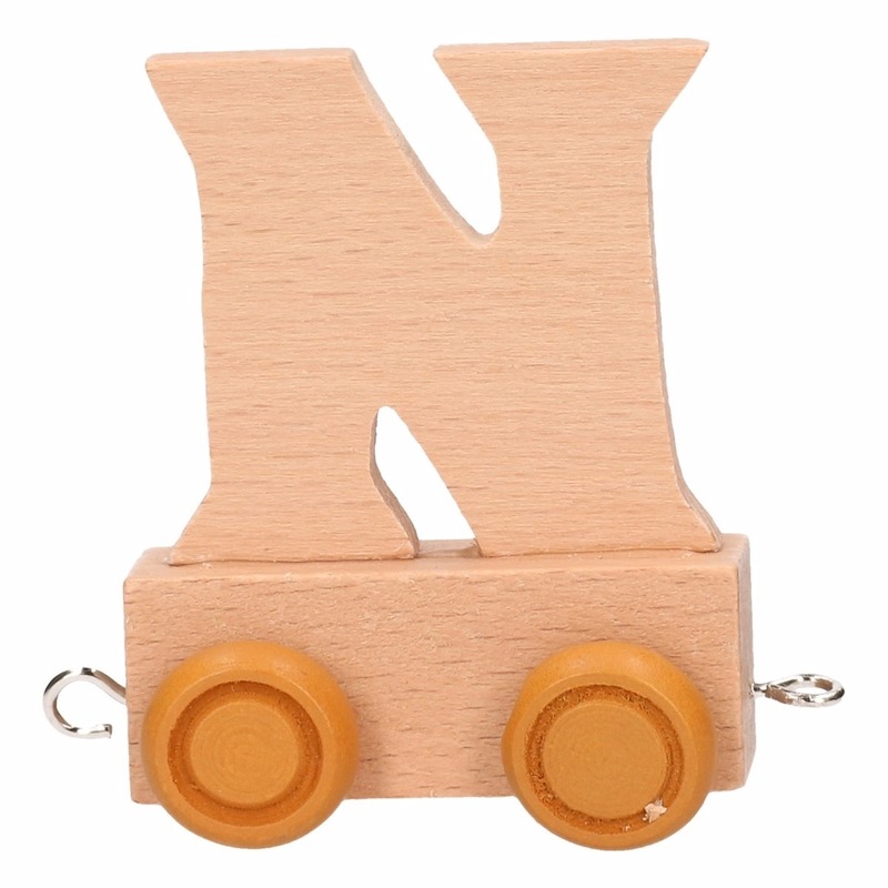 Houten letter trein N. De letter is inclusief wagon circa 5 cm lang en 6 cm hoog. Exclusief wagon circa 4 cm lang en 4 cm hoog. Deze houten letter trein N is een perfect kraamkado! Erg leuk om hiermee de naam van de nieuwe baby te maken. Voor meer letters zie de webshop.