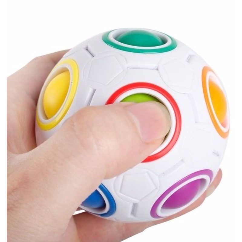 Magische anti stress puzzel regenboog bal 7 cm. Zoek de kleuren bij elkaar en verplaats de ballen naar het bijbehorende rondje. Leuk kinder denkspel om samen met iemand te spelen en te kijken wie er het snelst is! Ook leuk als anti stress spelletje.
