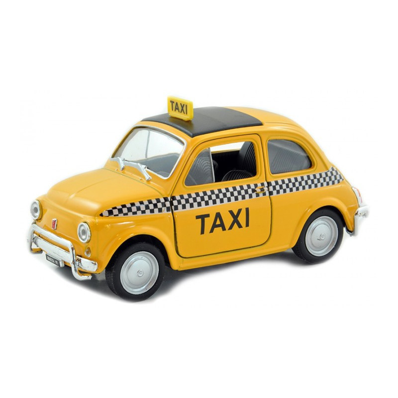 Modelauto Fiat 500 taxi geel schaal 1:24/12 x 5,5 x 5,5 cm. Modelauto/speelgoedauto van een Fiat 500 taxi. Model auto schaalmodel in de kleur geel, leuk om mee te spelen maar ook leuk als cadeau/kado voor de verzamelaar!