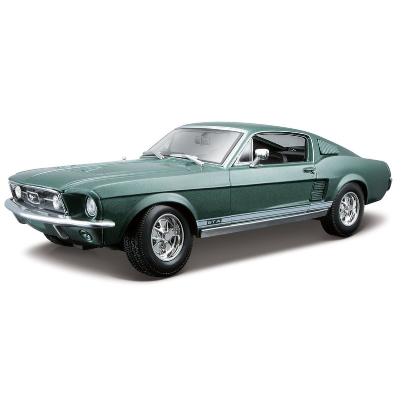 Modelauto van een groene Ford Mustang Fastback uit 1967. Breng de klassieke Ford Mustang Fastback 1967 tot leven met dit gedetailleerde Maisto schaalmodel in een opvallende groene kleur. Deze schaal 1:18 modelauto is gemaakt van metaal en kunststof, waardoor het een perfecte replica is van het iconische muscle car. Ideaal als speelgoedauto voor uren plezier of als decoratief verzamelobject voor Mustang-liefhebbers!