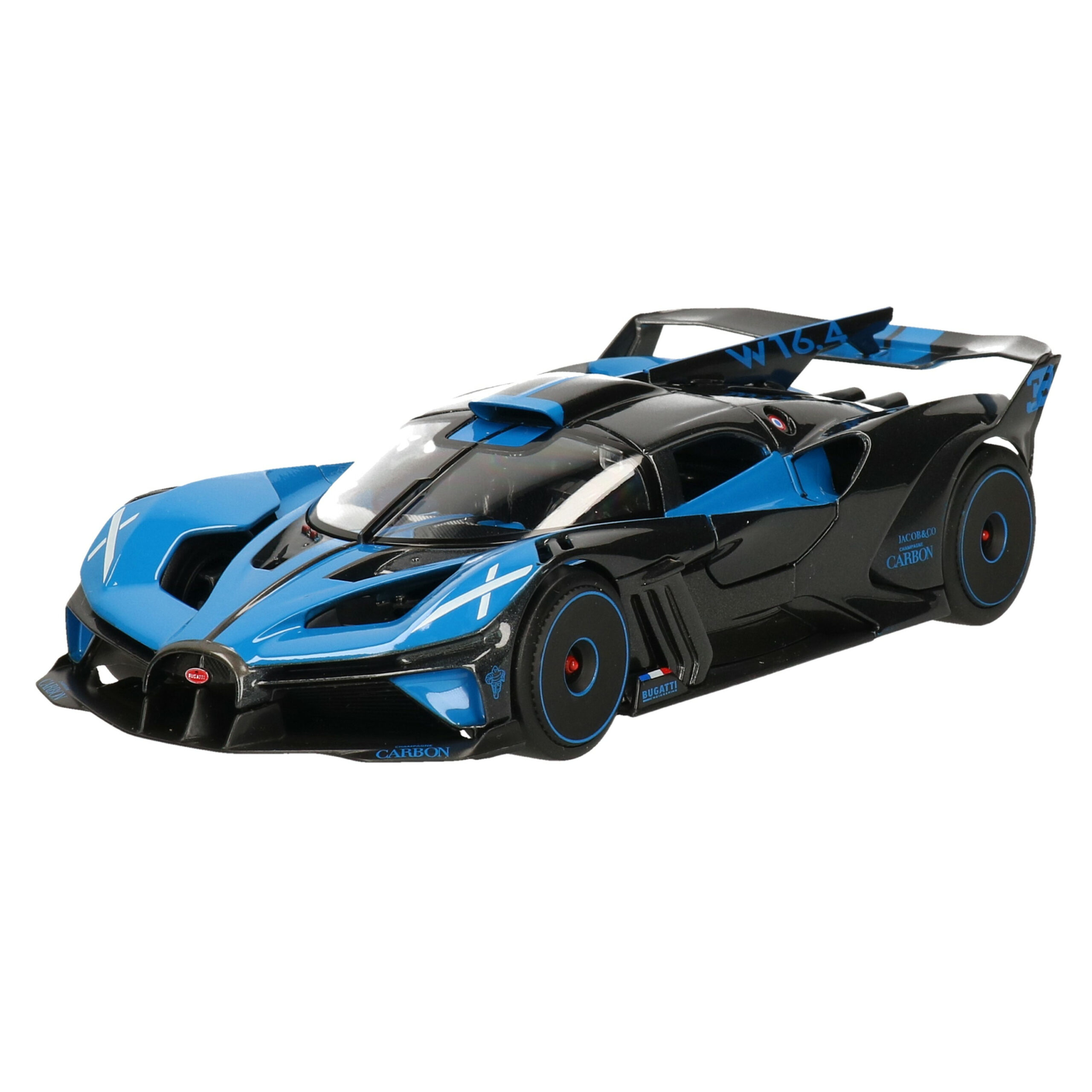 Modelauto/speelgoedauto van de Bugatti Bolide Special Edition. Model auto schaalmodel in de kleur blauw/carbon, leuk om mee te spelen maar ook leuk als cadeau/kado voor de verzamelaar!