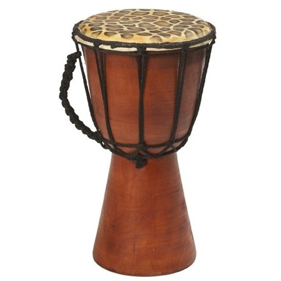Deze handgemaakte houten trommel van 25 cm brengt ritme en karakter in huis. De bovenkant is van echt leer en bedrukt met een speelse giraffeprint ? een knipoog naar de wilde natuur. Elk exemplaar is met de hand gemaakt op het Indonesische eiland Bali, waar vakmanschap en creativiteit samenkomen. Of je nu muziek maakt of hem als blikvanger neerzet: deze trommel zorgt voor een warm, exotisch accent. Let op: dit is geen speelgoed en niet geschikt voor kinderen.