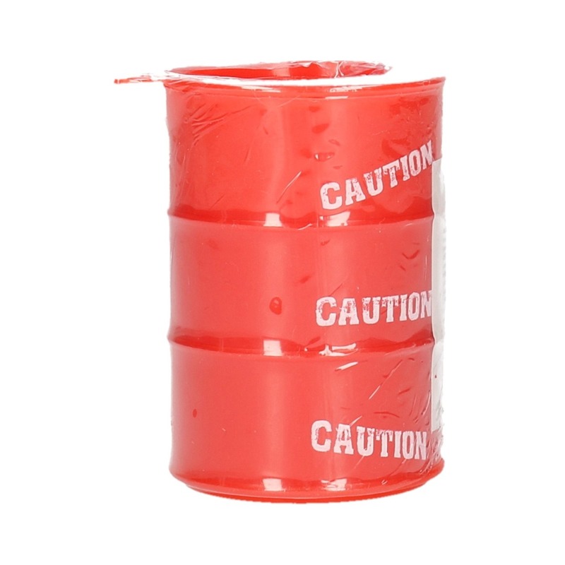 Olievat met rood slijm. Plastic olievaatje met rood slijm erin. Het formaat van een potje is ongeveer 5,5 x 7,5 cm en heeft een inhoud van ongeveer 130 gram.