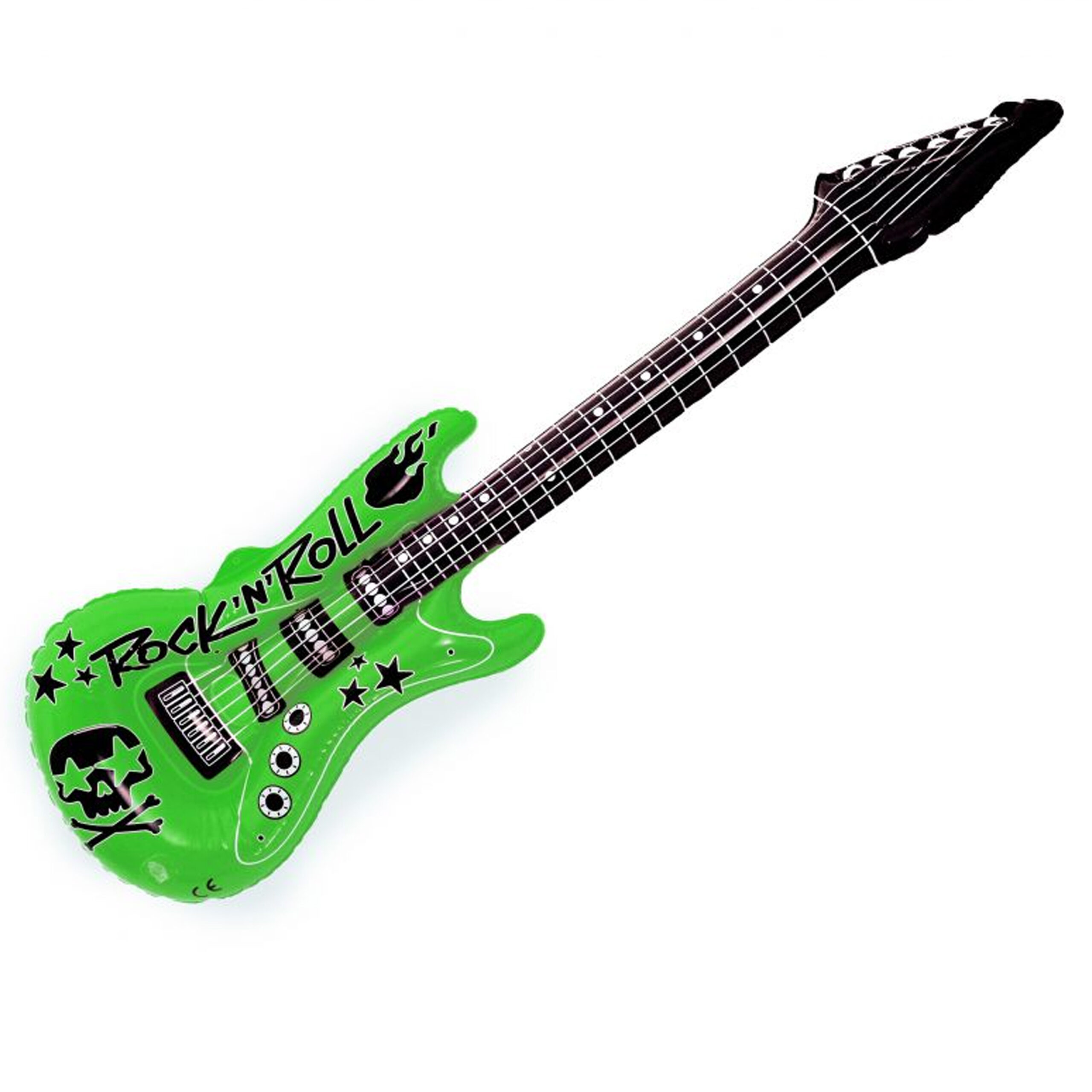 Laat kinderen muziek beleven met deze opblaasbare gitaar! Het vrolijke speelgoed is perfect voor spel, verkleedpartijen of feestjes. De gitaar is opblaasbaar en licht van gewicht, waardoor kinderen er gemakkelijk mee kunnen spelen.?Laat de fantasie de vrije loop en steel de show als echte rockster! Afmetingen: 55 cm lang! Deze leuke gitaar hebben wij in nog meer andere vrolijke kleuren!