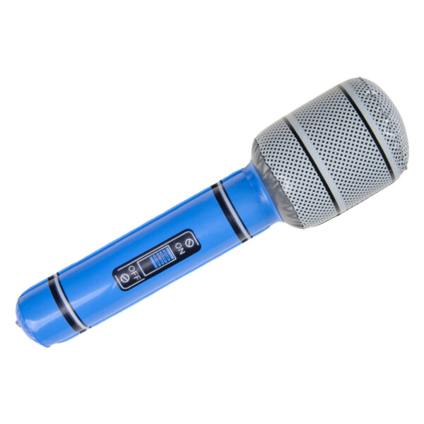 Opblaasbare microfoon van duckiez. Zing de sterren van de hemel met deze vrolijke opblaasbare microfoon in de kleur blauw! Het ideale speelgoed voor kleine zangers en zangeressen die graag in de spotlights staan. De microfoon is licht van gewicht, eenvoudig op te blazen en perfect voor karaoke, verkleedpartijtjes of creatieve rollenspellen. Laat je fantasie de vrije loop en geef je eigen show! Afmetingen: 25 cm lang.