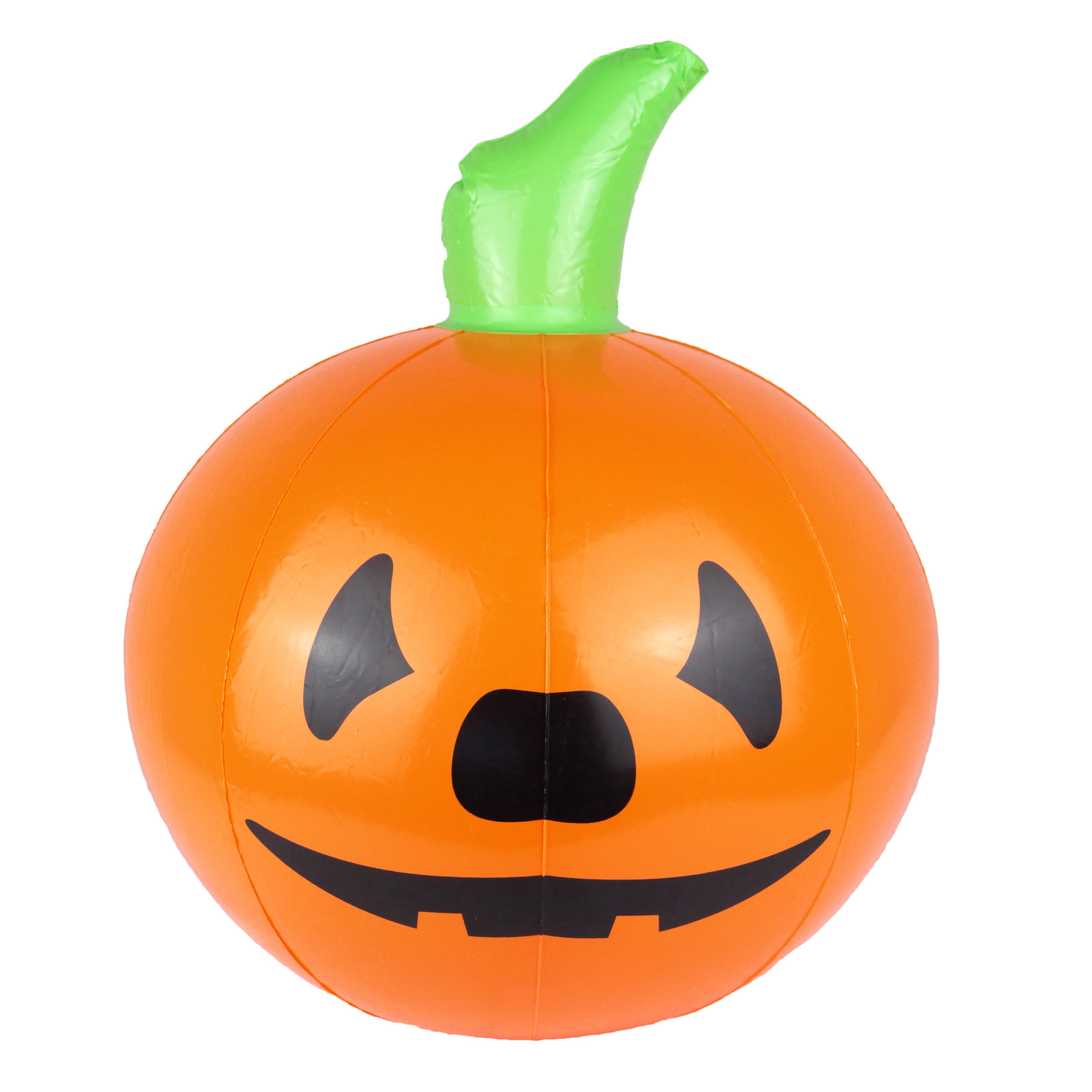 Opblaasbare Halloween decoraties, een pompoen. Materiaal: PVC kunststof. Afmetingen 35 x 35 cm. Opblaasbaar speelgoed om mee te spelen of als decoratie. Verzwaar ze met een beetje water erin, dan blijven ze of beter staan, of beter drijven.
