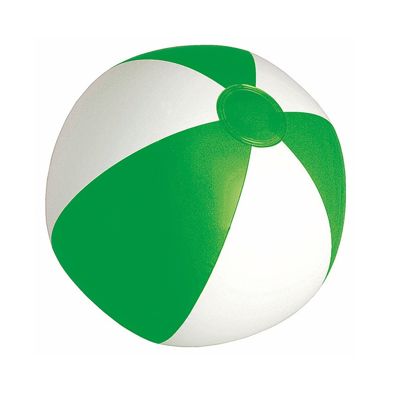 Opblaasbare strandbal groen/wit. Deze opblaasbare strandbal in een frisse kleur is het perfecte zwembad- en strand speelgoed voor zowel kinderen als volwassenen! Met een diameter van 28 cm wanneer opgeblazen, biedt deze bal eindeloos speelplezier, of je nu aan het zwemmen, zonnen of spelen bent.