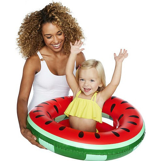 Opblaasbare watermeloen baby float 68 cm. Baby zwemband met watermeloen fruit print. De zwemband/het luchtbed heeft een stretch netje in het midden, waardoor uw kind in het midden kan blijven zitten.