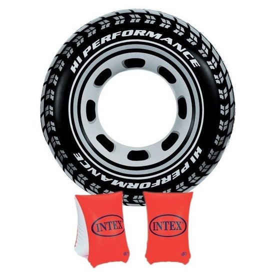 Opblaasbare zwemband met zwemmouwtjes 6-12 jaar voor kinderen. Complete zwemhulp set bestaande uit een zwemband en 2 zwemmouwtjes. Materiaal: vinyl. Diameter band: 91 cm. Maximaal gewicht voor zwemmouwtjes: 60 kg. , Dit artikel bestaat uit:, 1x Intex Opblaasbare autoband – zwemband/zwemring – 91 cm, 1x Zwembandjes Intex 6-12 jaar