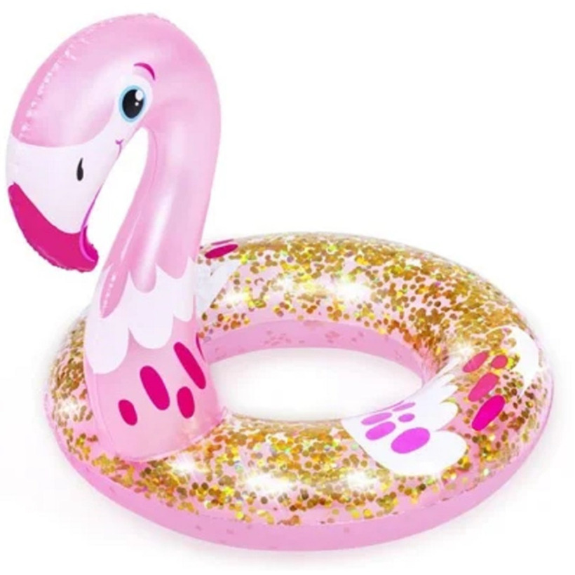 Opblaasbare zwemband in de vorm van een flamingo van het merk Bestway.? De zwemring heeft een diameter van circa 61 centimeter, is gemaakt van PVC en bevat twee luchtkamers die het opblazen en leeg laten lopen van deze band gemakkelijker maken.? Geschikt voor kinderen van 3 tot en met 6 jaar oud.? Let op: dit artikel betreft speelgoed en geldt niet als zwemhulpmiddel.