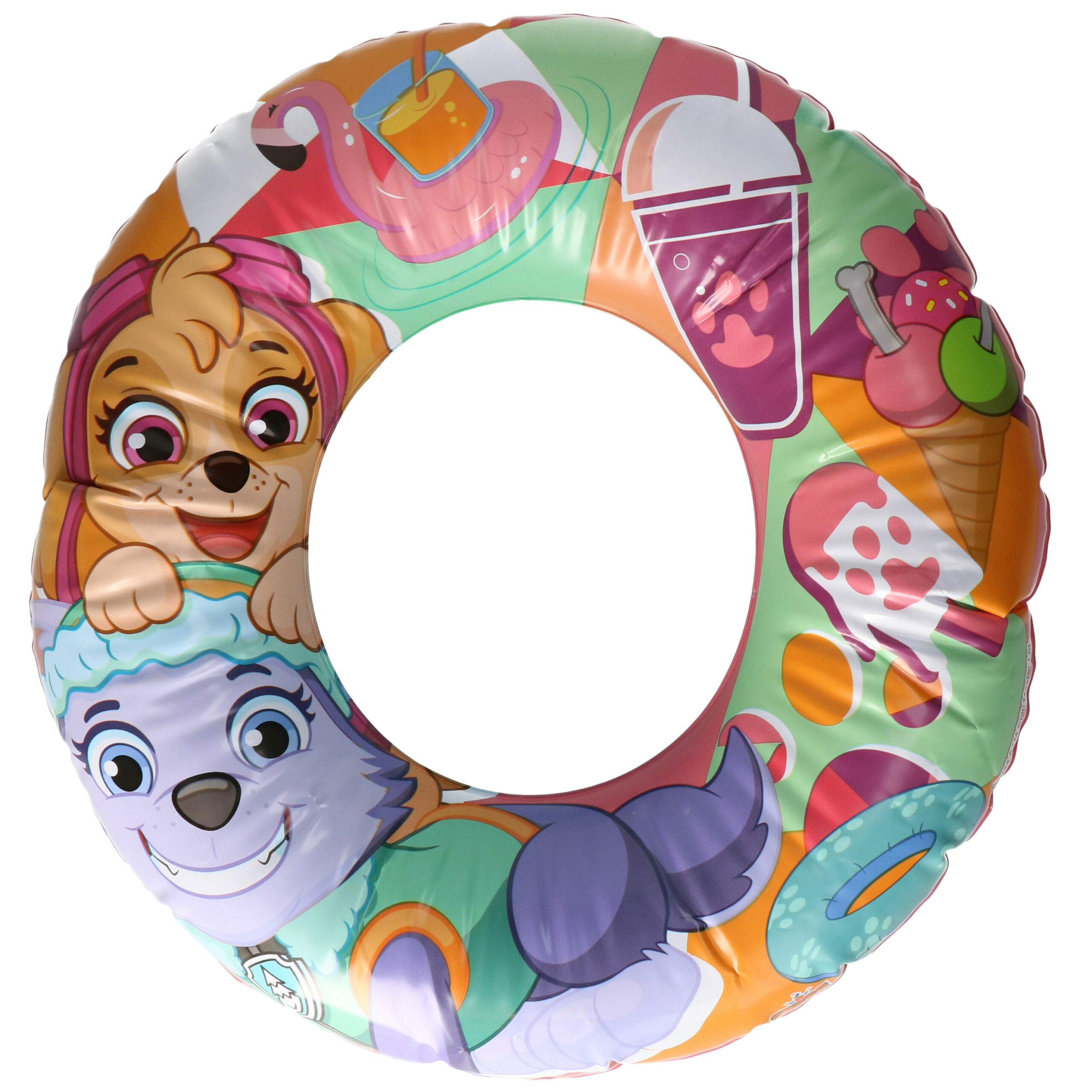 Opblaasbare zwemband met Paw Patrol print, in de vorm van een ring van het merk Bestway. De zwemring heeft een diameter van circa 50 centimeter, is gemaakt van PVC en bevat luchtkamers die het opblazen en leeg laten lopen van deze band gemakkelijker maken. Geschikt voor kinderen van 3 tot en met 6 jaar oud. Let op: dit artikel betreft speelgoed en geldt niet als zwemhulpmiddel.