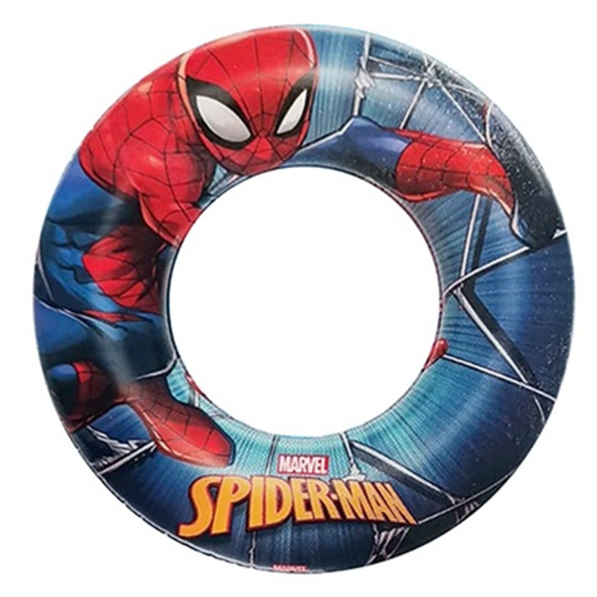 Opblaasbare zwemband met Spiderman print, in de vorm van een ring van het merk Bestway. De zwemring heeft een diameter van circa 55 centimeter, is gemaakt van PVC en bevat luchtkamers die het opblazen en leeg laten lopen van deze band gemakkelijker maken. Geschikt voor kinderen van 3 tot en met 6 jaar oud. Let op: dit artikel betreft speelgoed en geldt niet als zwemhulpmiddel.