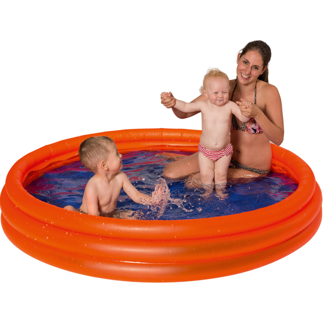 Oranje opblaasbaar zwembad 175 x 31 cm speelgoed. Rond zwembadje met drie banden/ringen.