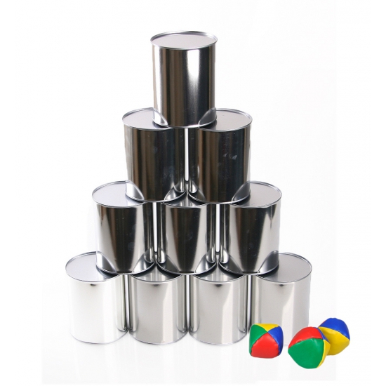 Blikken gooien spel 10x met balletjes. Het ouderwetse leuke spel blikgooien! Blikken gooien speelgoed set met 10 blikken en 3 gekleurde balletjes. De blikken hebben een hoogte van ongeveer 13,2 cm en een diameter van 10,8 cm. , Dit artikel bestaat uit:, 10x Leeg blik met deksel – 1 liter, 1x Jongleerballen – 3x stuks – gekleurd – 5 cm – jongleren – spel – ballengooien