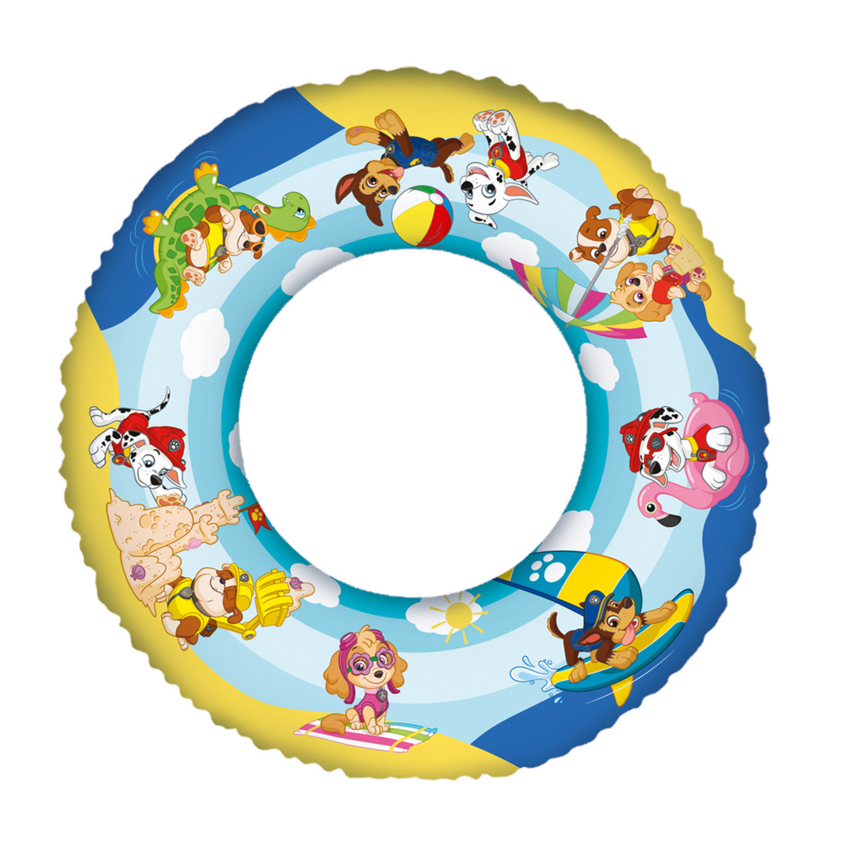 Paw Patrol zwemband – opblaasbaar – Chase/Marshall/Rubble/Skye – vinyl – 45 cm – waterspeelgoed. Deze opblaasbare Paw Patrol zwemband van 45 cm is perfect buitenspeelgoed voor jonge fans van de populaire tv-serie. Met vrolijke opdruk van de bekende hondjes Chase, Marshall, Rubble en Skye. Ideaal voor gebruik in het zwembad of op het strand. De zwemband is gemaakt van stevig vinyl en wordt geleverd inclusief reparatie/sticker set en Nederlandse gebruiksaanwijzing. Let op: dit is speelgoed en geen zwemhulpmiddel. Getest en goedgekeurd volgens CE- en TuV-veiligheidsnormen.