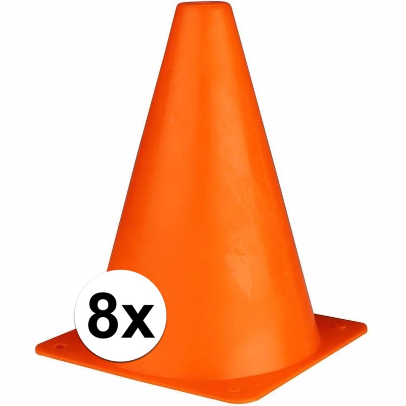 Sport/voetbal training pionnen oranje 8x stuks. Deze set van oranje trainingspionnen is een onmisbare accessoire voor sporttrainingen en veldsporten. De kegels zijn ideaal voor slalomoefeningen, dribbeltrainingen en het uitzetten van parcoursen bij voetbal, hockey, atletiek en andere sporten. Gemaakt van stevig plastic, zijn ze lichtgewicht en eenvoudig te verplaatsen.