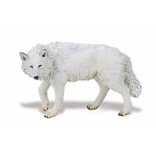 Plastic speelgoed figuur witte wolf 9 cm. Speelgoed witte wolf van plastic. Materiaal: PVC. Formaat: 9,5 x 6,5 cm.