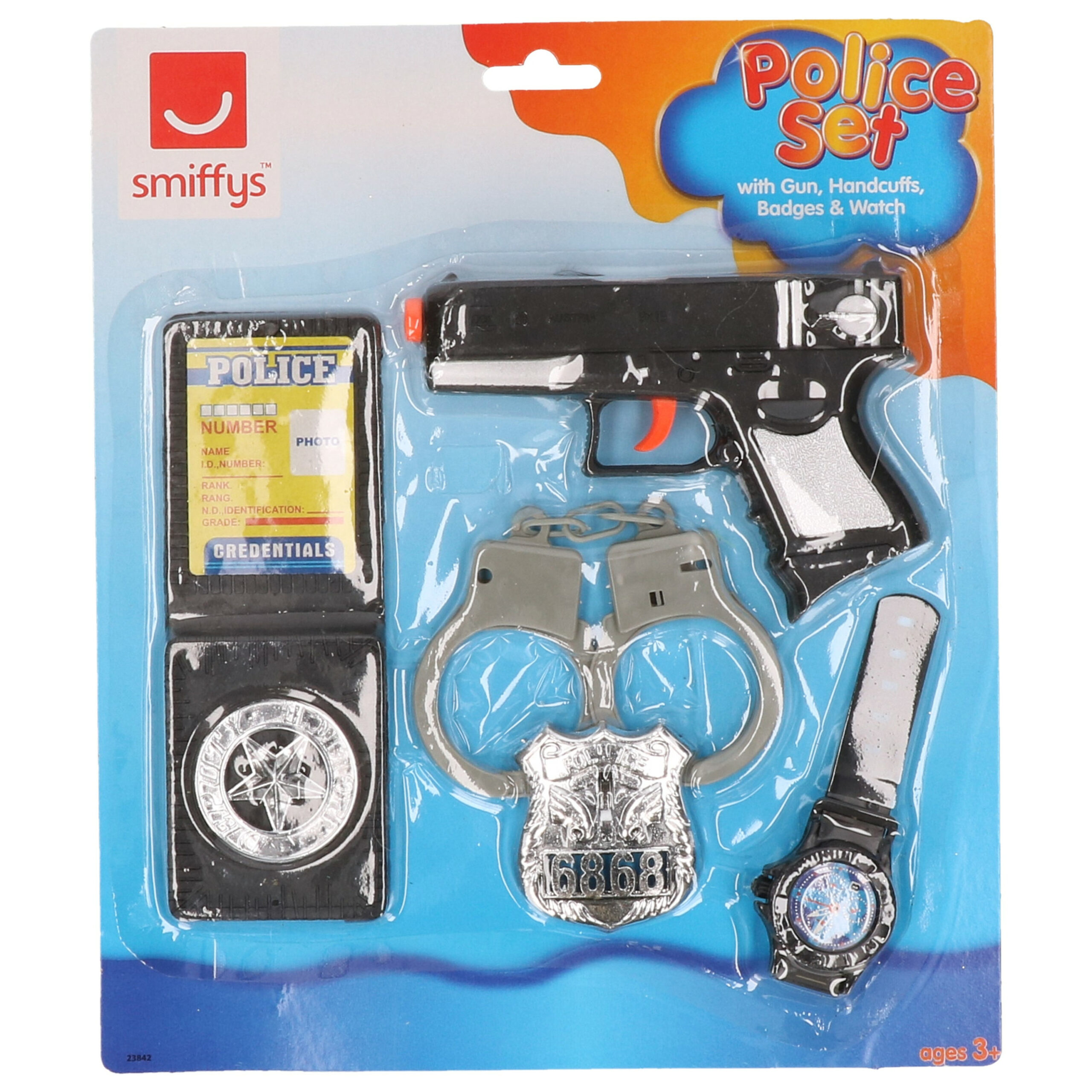 Laat je kleine politiedetective het avontuur beleven met deze 5-delige politie speelgoed verkleed set! Deze set bevat alles wat je nodig hebt voor een spannende en realistische politie-uitrusting. Het bestaat uit een pistool, een badge, een horloge, handboeien en een politieboekje, waarmee kinderen zich volledig kunnen inleven in de rol van een dappere politieagent.