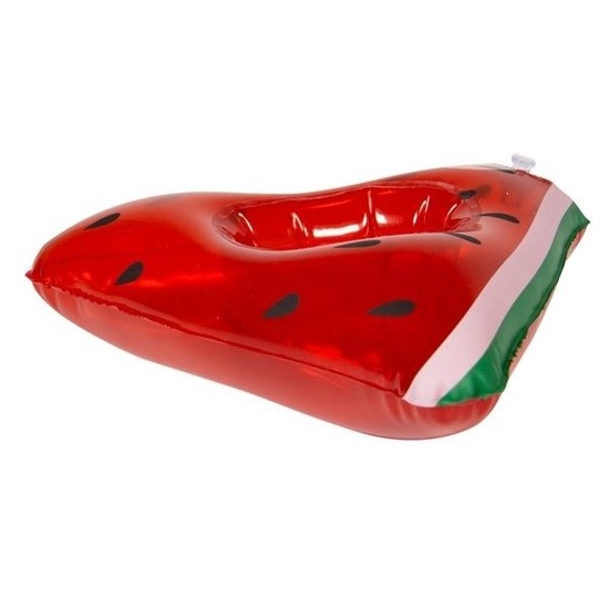 Poppen/knuffel opblaas zwemband watermeloen 19 cm. Opblaasbare zwemband om poppen of knuffels in te zetten. Leuk voor in bad of in het zwembad. Afmeting: 17 x 19 cm. Materiaal: vinyl.