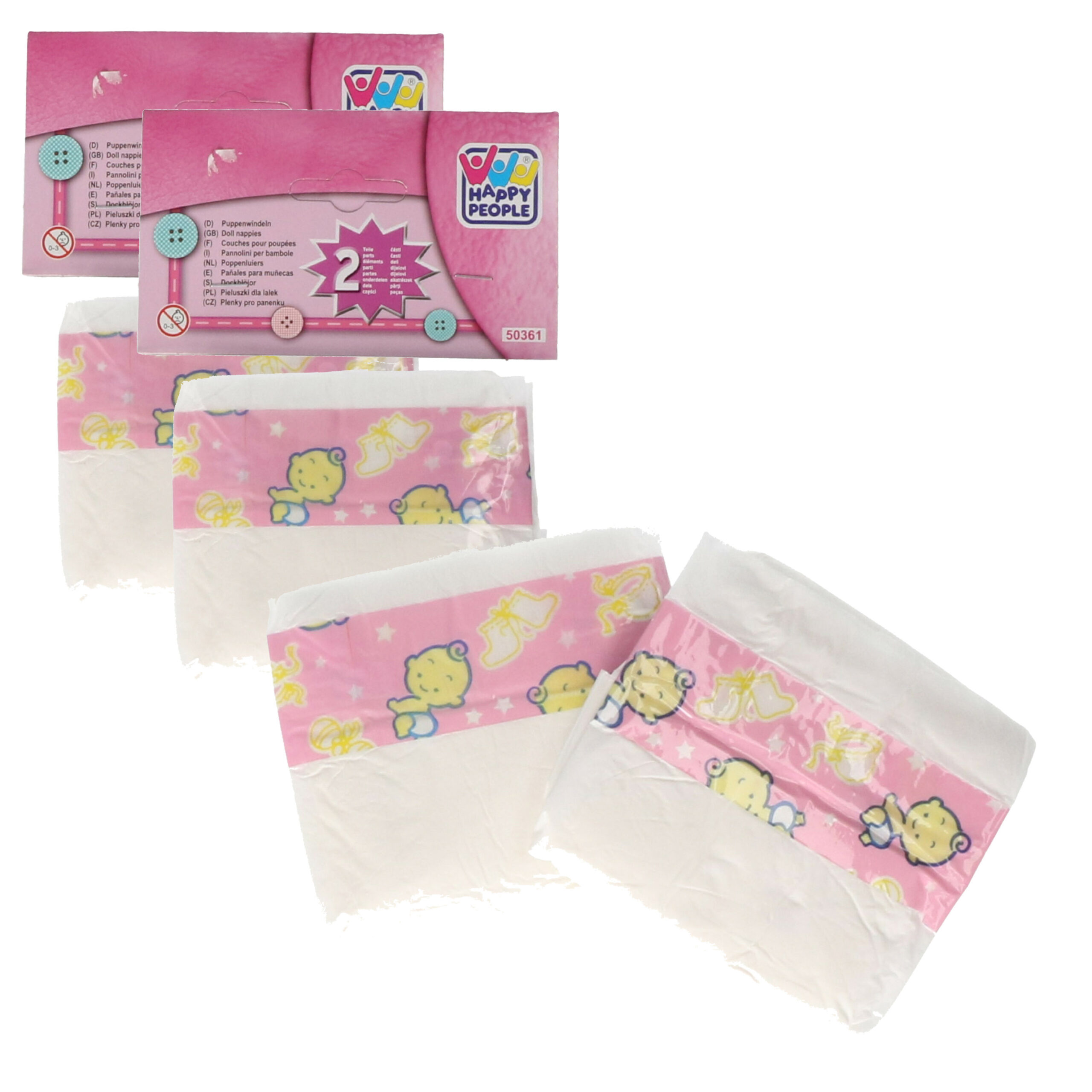 Poppenluiers – 6x – multikleur – stof/kunststof – 13 x 11 cm – poppenaccessoires. Set van 2x herbruikbare poppenluiers van Happy People, geschikt voor poppen van 30 tot 50 cm. Deze schattige luiers zijn voorzien van leuke opdrukken zoals auto’s en vliegtuigen, en sluiten met echte plakstripjes. Ze voelen als echte luiers en maken het poppenspel extra realistisch. Gemaakt van een combinatie van stof en kunststof en eenvoudig meerdere keren te gebruiken. Ideaal als aanvulling voor elke poppenmoeder of -vader.