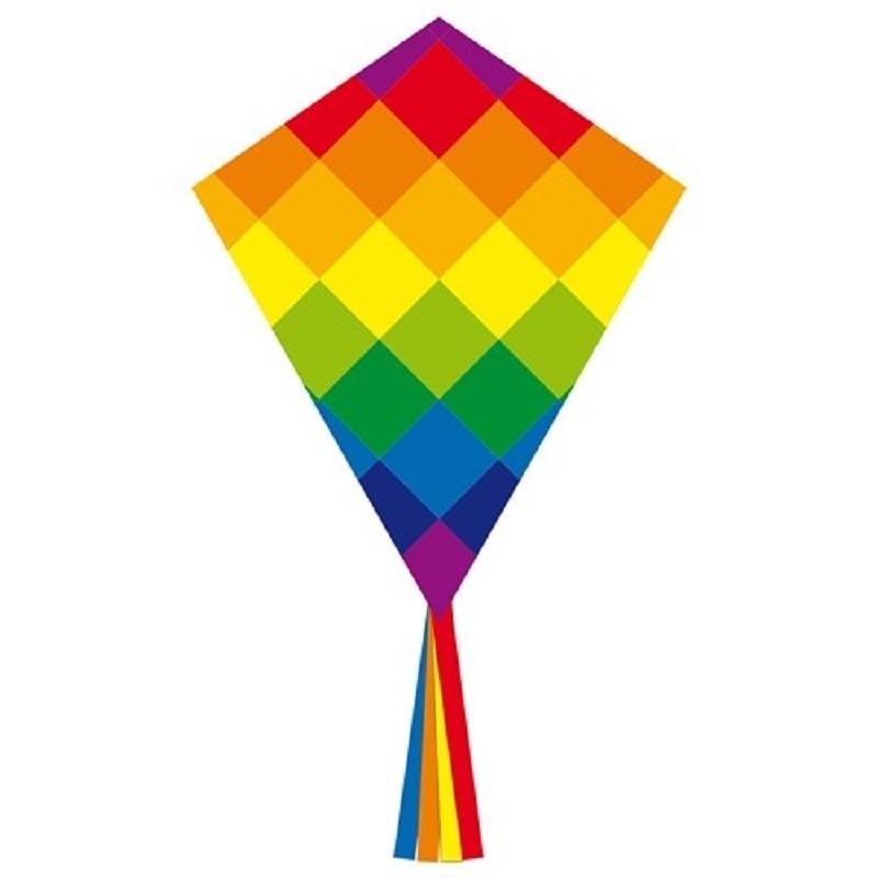 Regenboog vlieger gekleurd met leuke staart. Vrolijke vlieger met verschillende kleuren in ruit vorm. De vlieger is gemaakt van scheurvast ripstop polyester en wordt geleverd inclusief vliegerlijn op een winder. De vlieger vliegt heel gemakkelijk en heeft maar weinig wind nodig. Windrange: 15-45 km/u. Formaat: 58 x 70 cm. Lengte vliegerstaart: 250 cm. Geschikt voor kinderen vanaf 5 jaar. Kindervlieger strandspeelgoed/buitenspeelgoed.