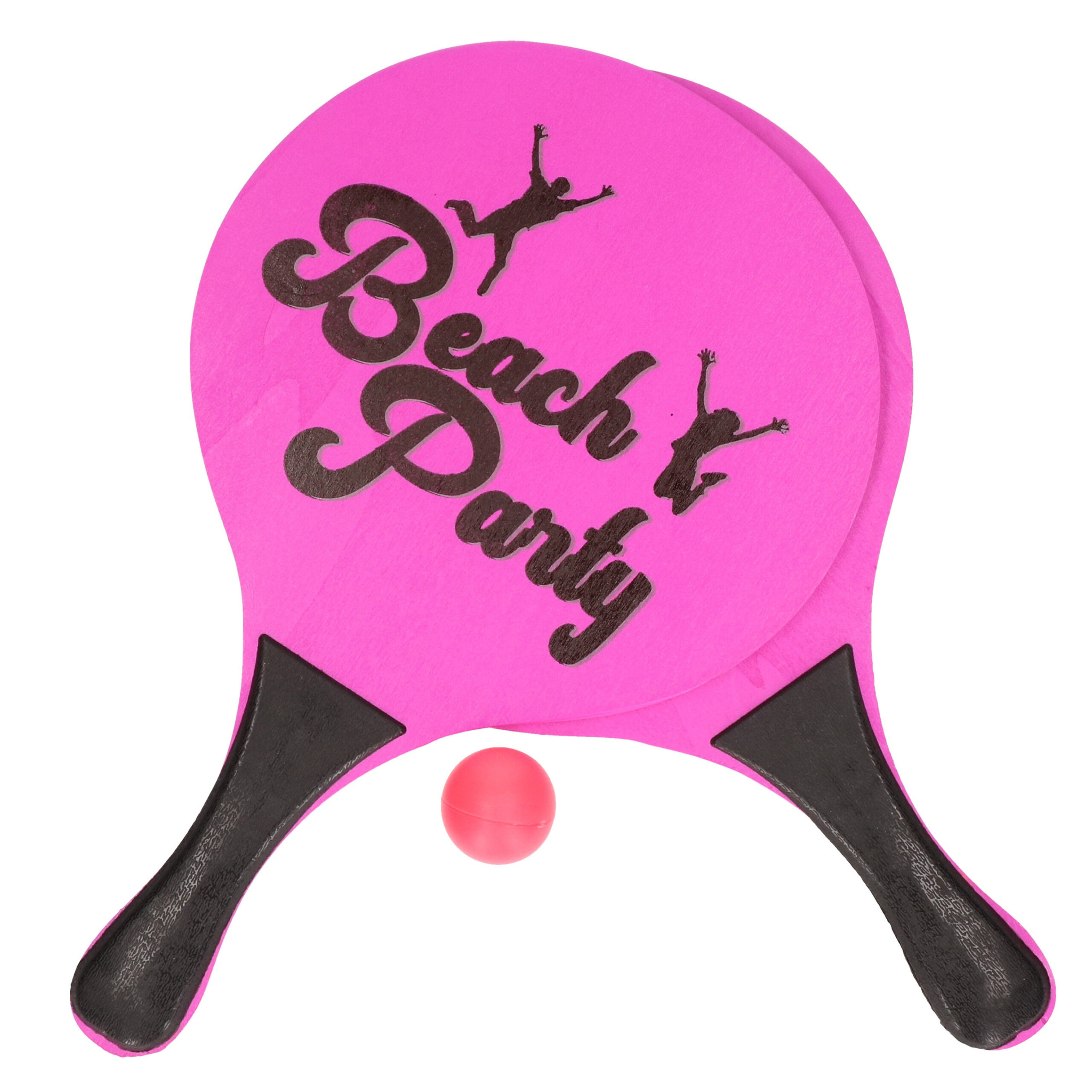 Roze beachball set buitenspeelgoed. Complete strandbal speelset, bestaande uit 2 roze rackets/batjes met zwart handvat en een balletje.