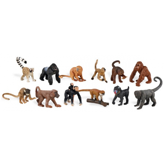 Apen speelfiguren 12x stuks. Ga op avontuur in de jungle met de Safari LTD speelfiguren apen mix! Deze set bestaat uit 12x verschillende apenfiguren, zorgvuldig gemaakt van kunststof. Met afmetingen vari?rend van 4 tot 7,5 cm zijn deze speeldieren perfect voor kleine handjes en creatieve speelmomenten. Ideaal voor dierenthema-verhalen, educatieve activiteiten of als leuke toevoeging aan je speeldierenverzameling. Ontdek de wondere wereld van de jungle met deze vrolijke en gedetailleerde apenfiguren!