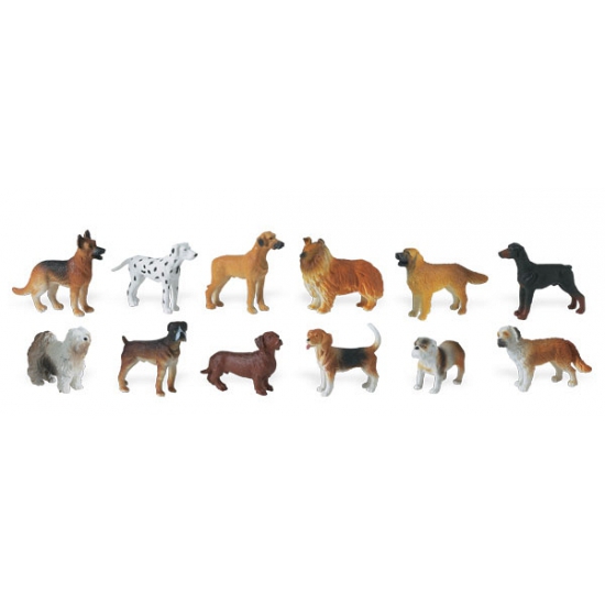 Plastic speelgoed honden. Koker met 11 verschillende soorten honden: onder andere een Duitse Herder, Dalmatier, een schapendoes, Bulldog en Dobermann. Deze set van Safari LTD zit vol vrolijke viervoeters! Met verschillende hondenfiguren kunnen kinderen spelen, verzamelen of een hondenfamilie naspelen. Gemaakt van kunststof en leuk voor iedereen die dol is op honden. De plastic hondjes varieren van 4 tot 7,5 cm.