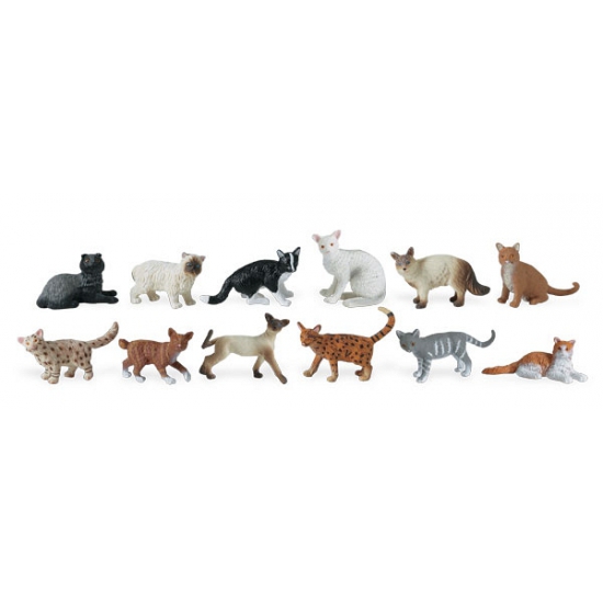 Speelgoed katten van kunststof. Deze set van 11 verschillende kattenfiguren van Safari LTD brengt de kattenwereld tot leven! Gemaakt van kunststof, zijn ze ideaal voor rollenspellen, diorama’s of om te verzamelen. Van een schattige kitten tot een trotse volwassen kat, deze speeldiertjes bieden eindeloze mogelijkheden voor fantasierijk spel voor kattenliefhebbers. Afmeting: ca. 4 tot 7,5 cm.