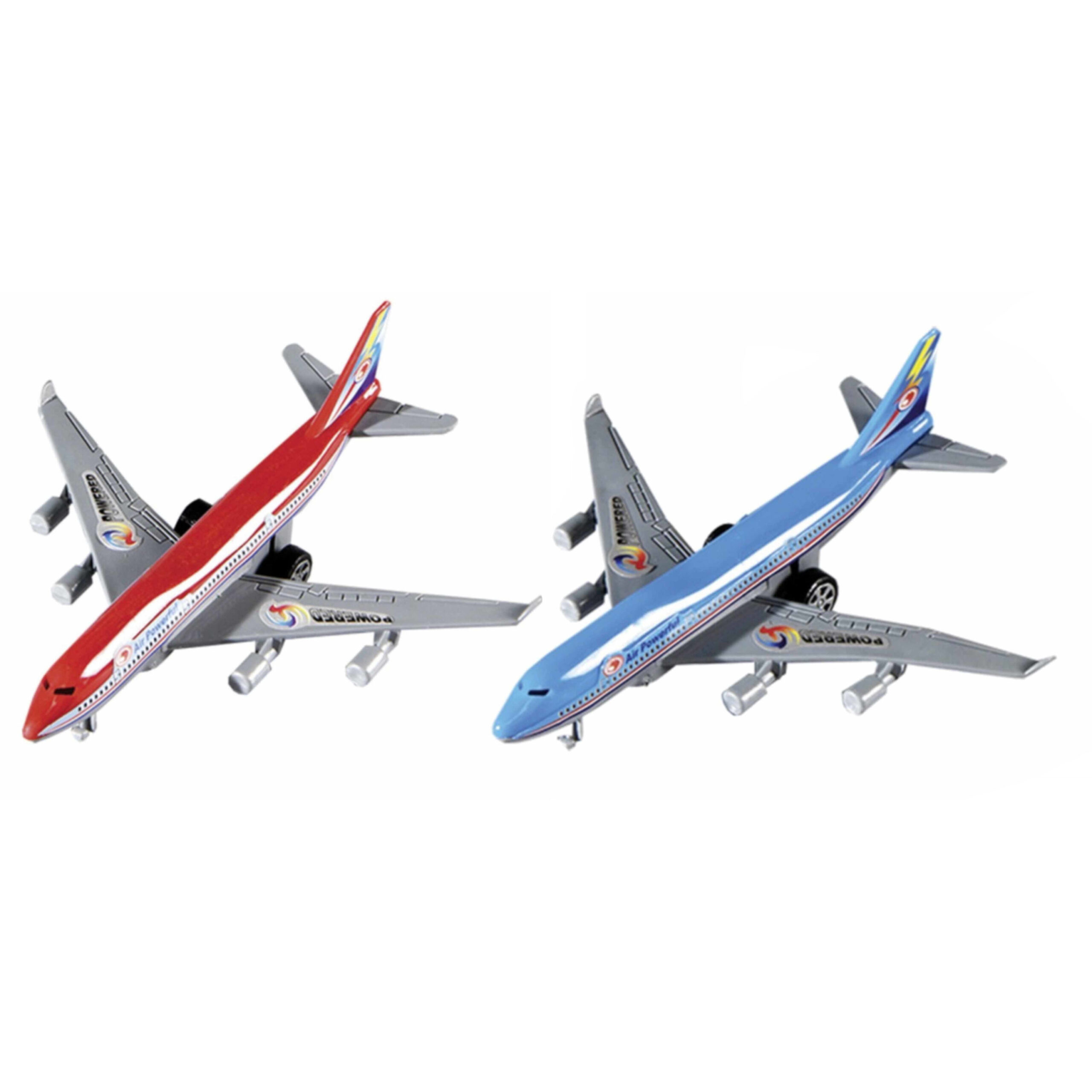 Set van 2x stuks speelgoed vliegtuigjes van 14 cm. U ontvangt 2x verschillende kleuren. Begin met het starten van je eigen vliegveld. Eindeloos speelplezier. Vliegtuigen met draaibare wielen en pullback functie. Zet het vliegtuig op de grond, trek deze duwend naar achter en laat los. Het vliegtuig zal nu naar voren schieten. Afmeting: ca. 21 x 14 x 2 cm. Materiaal: kunststof/metaal. , Dit artikel bestaat uit:, 1x Blauw/wit speelgoed vliegtuig met pull-back functie 14 cm, 1x Rood/wit speelgoed vliegtuig met pull-back functie 14 cm