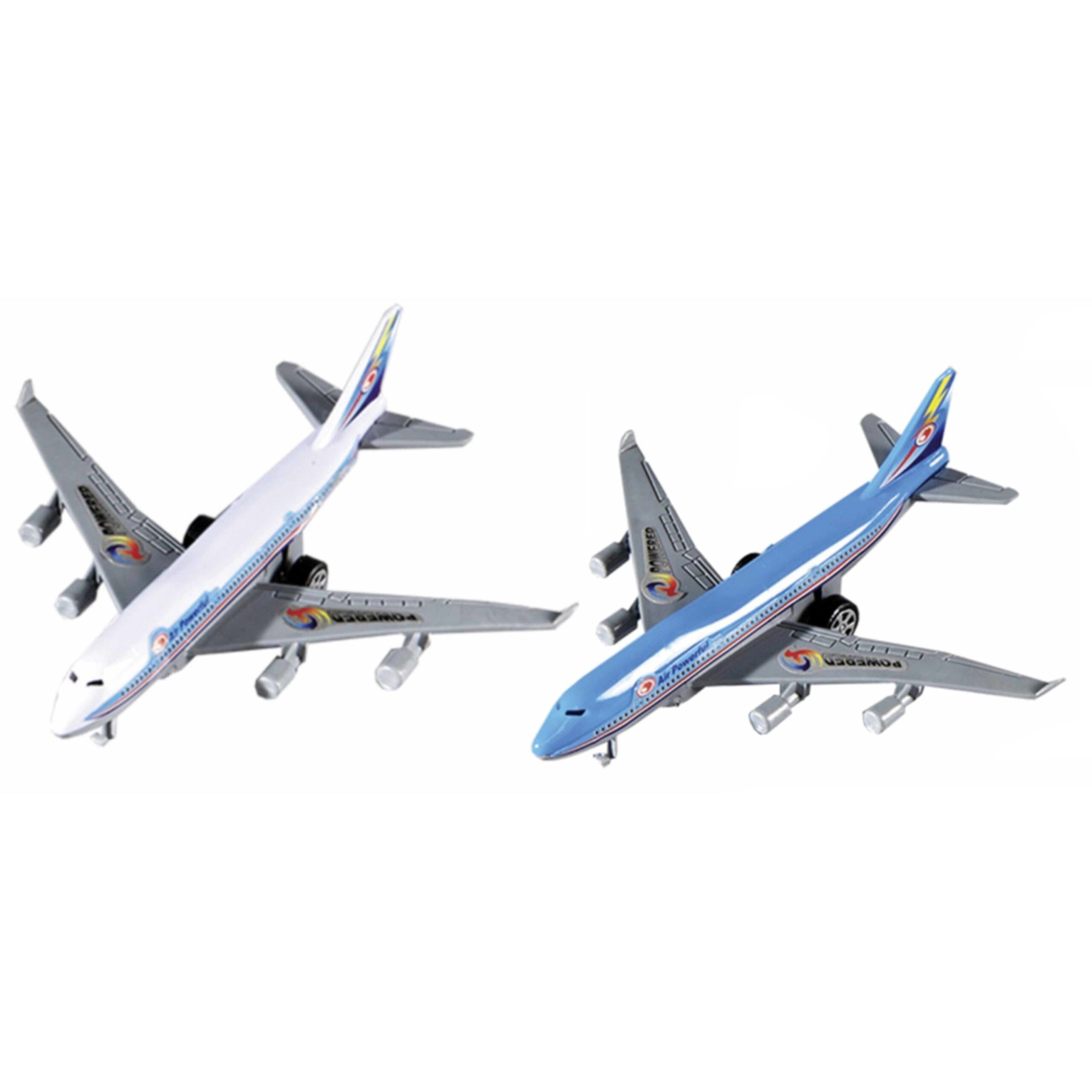 Set van 2x stuks speelgoed vliegtuigjes van 14 cm. U ontvangt 2x verschillende kleuren. Begin met het starten van je eigen vliegveld. Eindeloos speelplezier. Vliegtuigen met draaibare wielen en pullback functie. Zet het vliegtuig op de grond, trek deze duwend naar achter en laat los. Het vliegtuig zal nu naar voren schieten. Afmeting: ca. 21 x 14 x 2 cm. Materiaal: kunststof/metaal. , Dit artikel bestaat uit:, 1x Grijs/blauw speelgoed vliegtuig met pull-back functie 14 cm, 1x Blauw/wit speelgoed vliegtuig met pull-back functie 14 cm