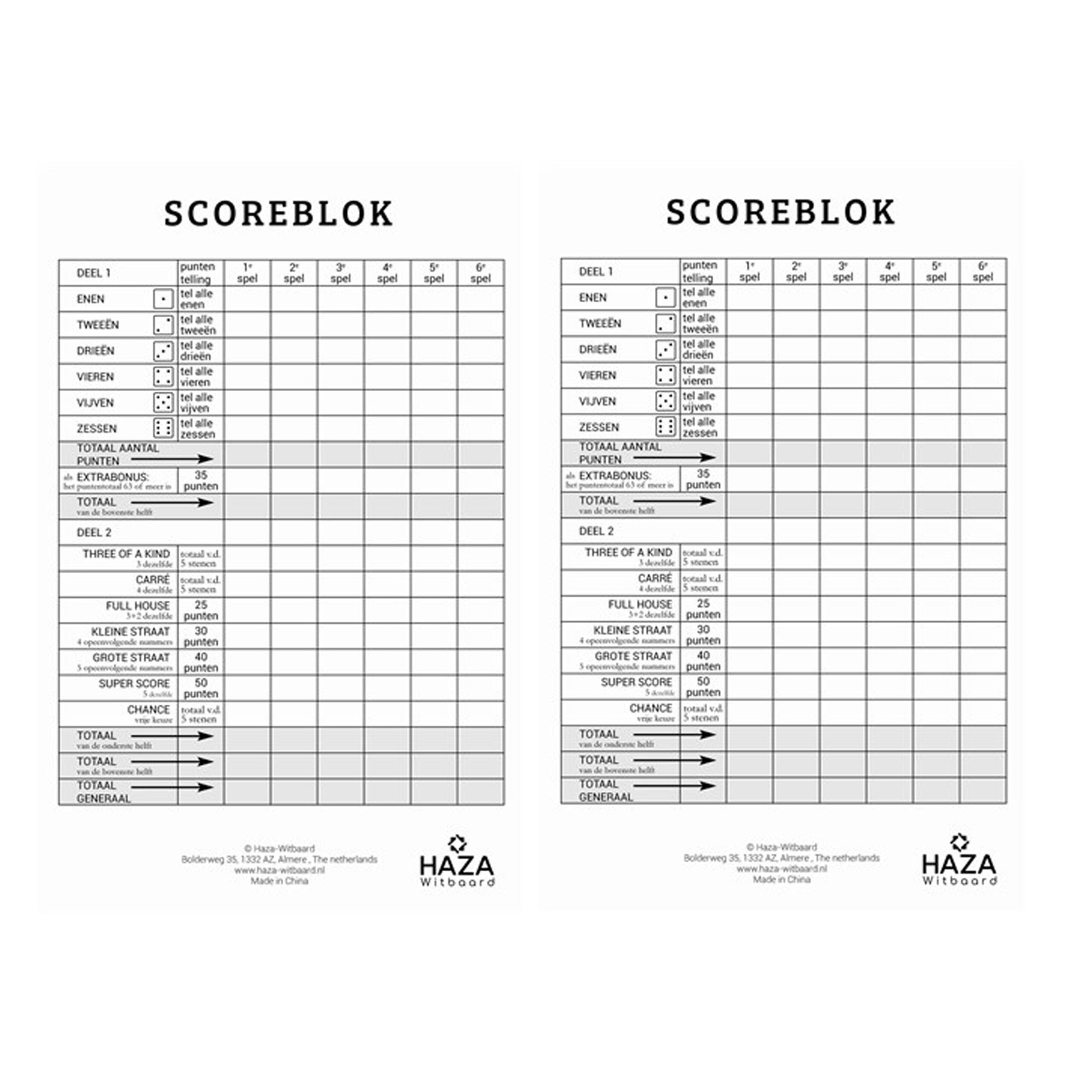 2x Scoreblok Yahtzee 250 vellen. Scoreblok om uw punten bij te houden met het dobbel spelletje Yahtzee. Dit blok bevat 250 velletjes en heeft een formaat van ca. 9,4 x 14,5 cm. Materiaal: papier.