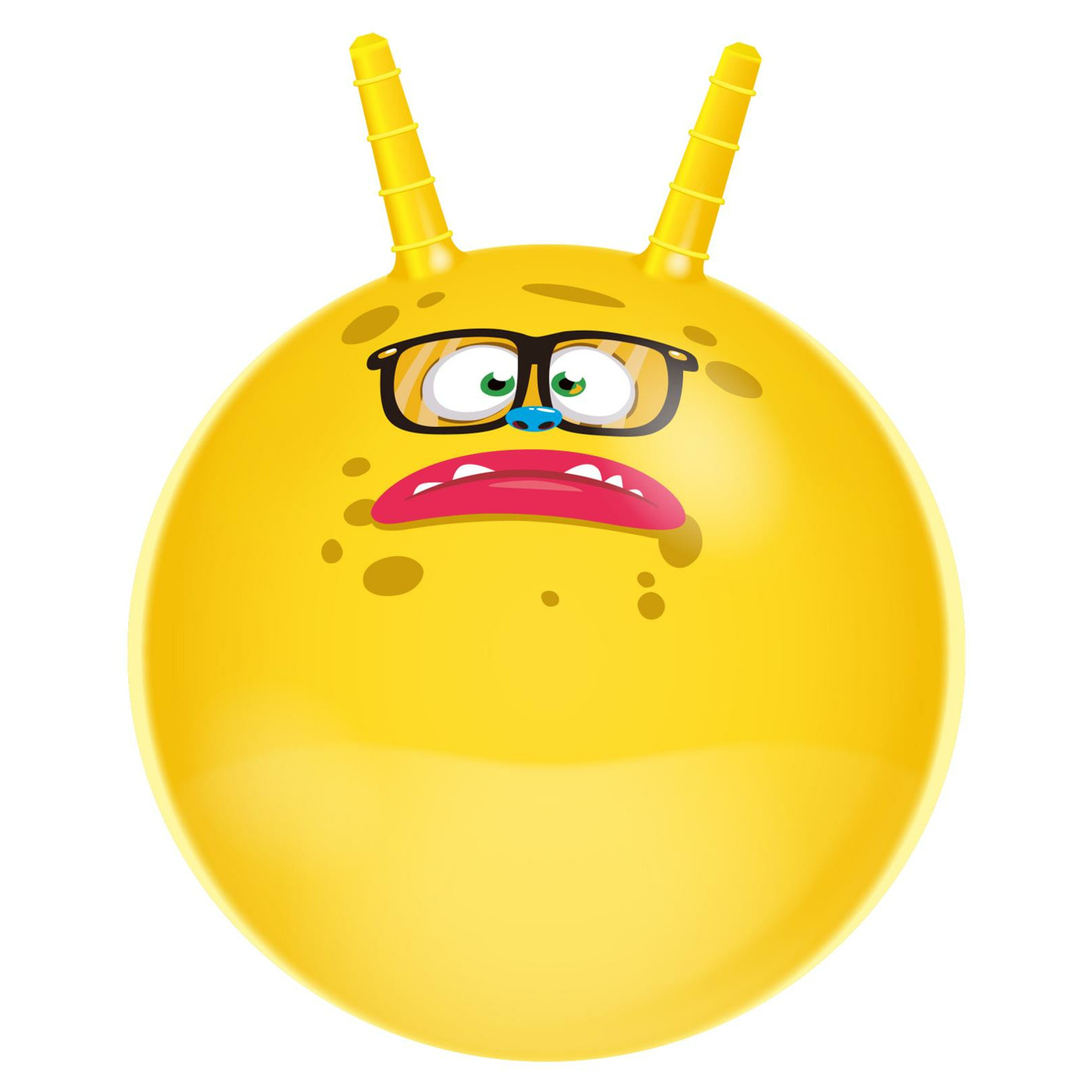 Skippybal uit de Funny Faces serie in de kleur geel. Kleine skippybal met een grappig gezicht erop geprint voor kinderen. De skippybal heeft een doorsnede van circa 45 cm wanneer deze opgeblazen is. Buitenspeelgoed skippyballen/springballen voor jongens/meisjes. Opblazen met een ballenpomp. Materiaal: rubber.
