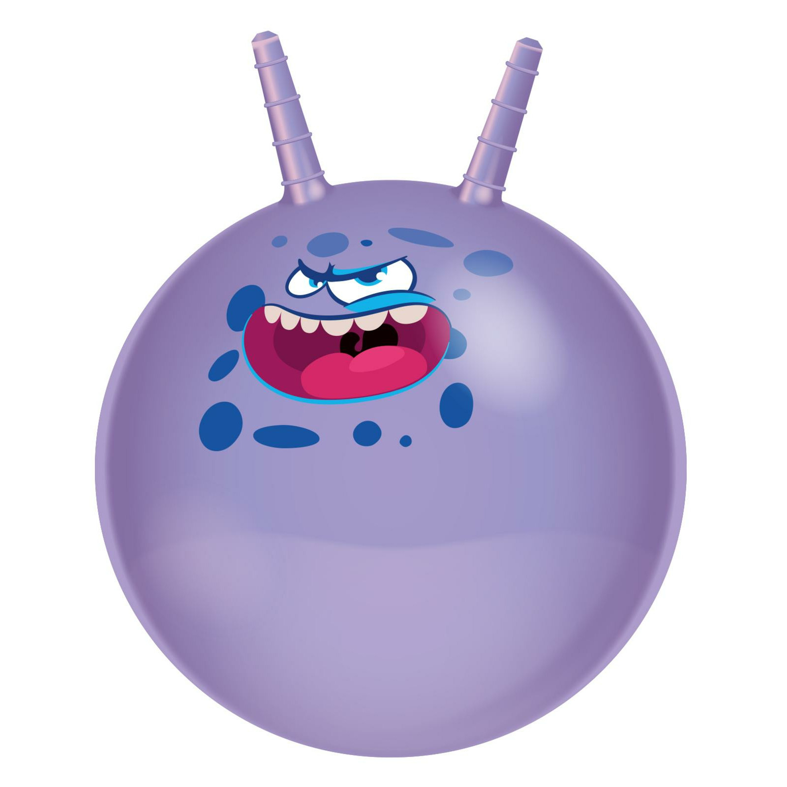 Skippybal uit de Funny Faces serie in de kleur paars. Kleine skippybal met een grappig gezicht erop geprint voor kinderen. De skippybal heeft een doorsnede van circa 45 cm wanneer deze opgeblazen is. Buitenspeelgoed skippyballen/springballen voor jongens/meisjes. Opblazen met een ballenpomp. Materiaal: rubber.