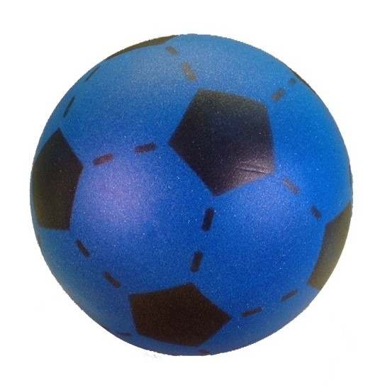 2x grote foam soft voetbal in de kleur blauw. Grote softbal met voetbal print. Deze zachte speelgoed bal heeft een doorsnee van ongeveer 20 cm en is gemaakt van schuimrubber. Buiten en binnen speelgoed voor kinderen.