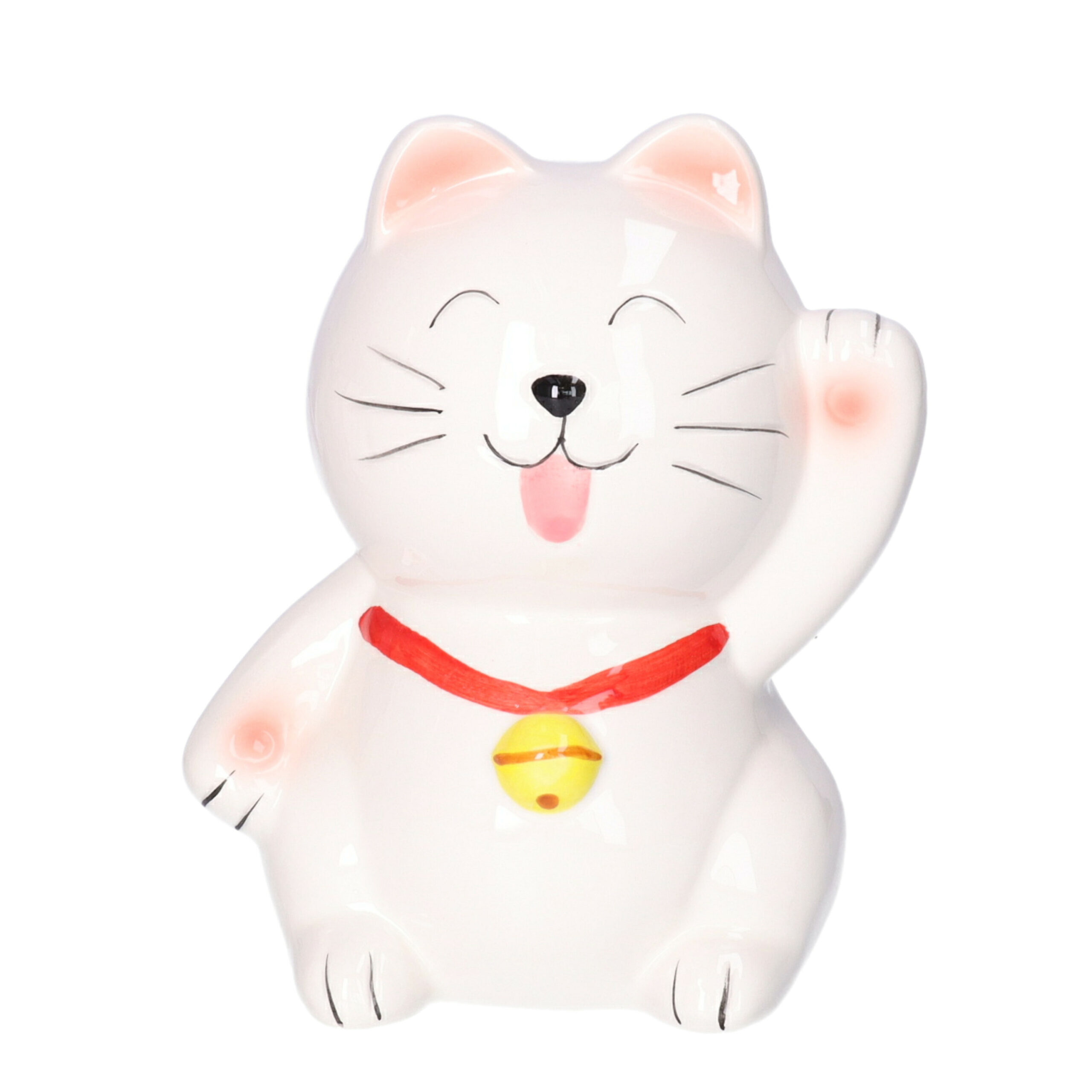 Gerimport Spaarpot kat/poes. Deze schattige spaarpot in de vorm van een kat is niet alleen een vrolijk accessoire voor de kamer, maar helpt kinderen ook leren sparen! Gemaakt van hoogwaardig porselein, heeft deze spaarpot een leuke uitstraling die elke kinderkamer opvrolijkt. Dankzij het stevige materiaal is hij zowel een decoratief item als een functioneel object. De kat met zijn speelse oogjes nodigt uit om een muntje te sparen en leert kinderen de waarde van geld en sparen, terwijl hij tegelijkertijd een leuk dierenthema toevoegt aan de kamer. De dop aan de onderkant maakt het makkelijk om je gespaarde centen weer eruit te halen! Afmeting spaarpot: ca.?13 x 14 x 17 cm.