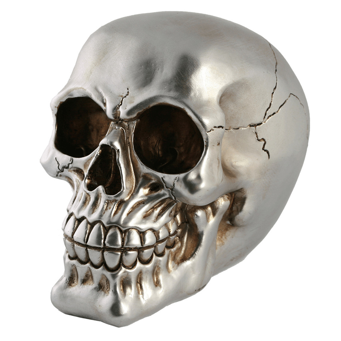 Spaarpot Schedel – met koptelefoon – polyresin – 16 x 12 cm – leren sparen